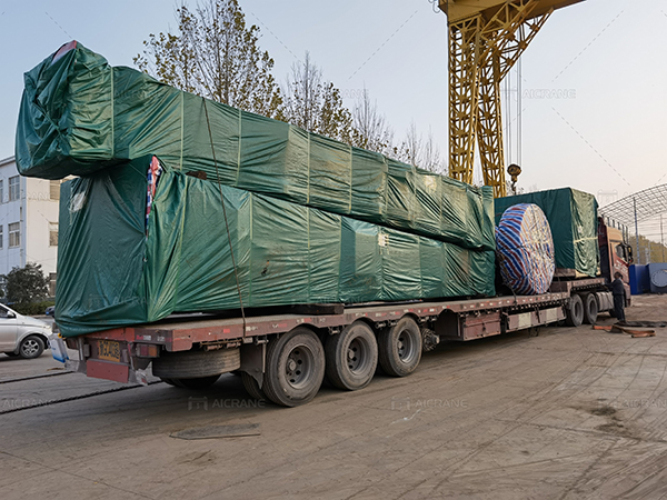 For the main girder of a crane with a length of more than 11 meters, in order to facilitate container loading, we will cut it into 2-3 pieces. The cut program is provided by Aicrane professional engineer, and the cutting point is connected by flange and high-strength bolts. We will also provide the related accessories. Customers can make the connection by themselves according to the drawings we provide.